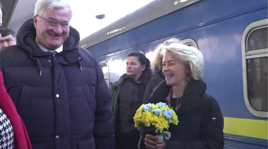 Президентка Єврокомісії Урсула фон дер Ляєн і президент Європейської ради Антоніу Кошта прибули до Києва вранці 24 лютого.