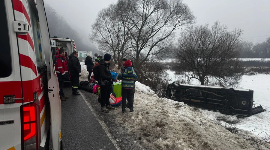 На Закарпатті вранці 25 січня автобус з дітьми з’їхав з траси та перекинувся, є травмовані.